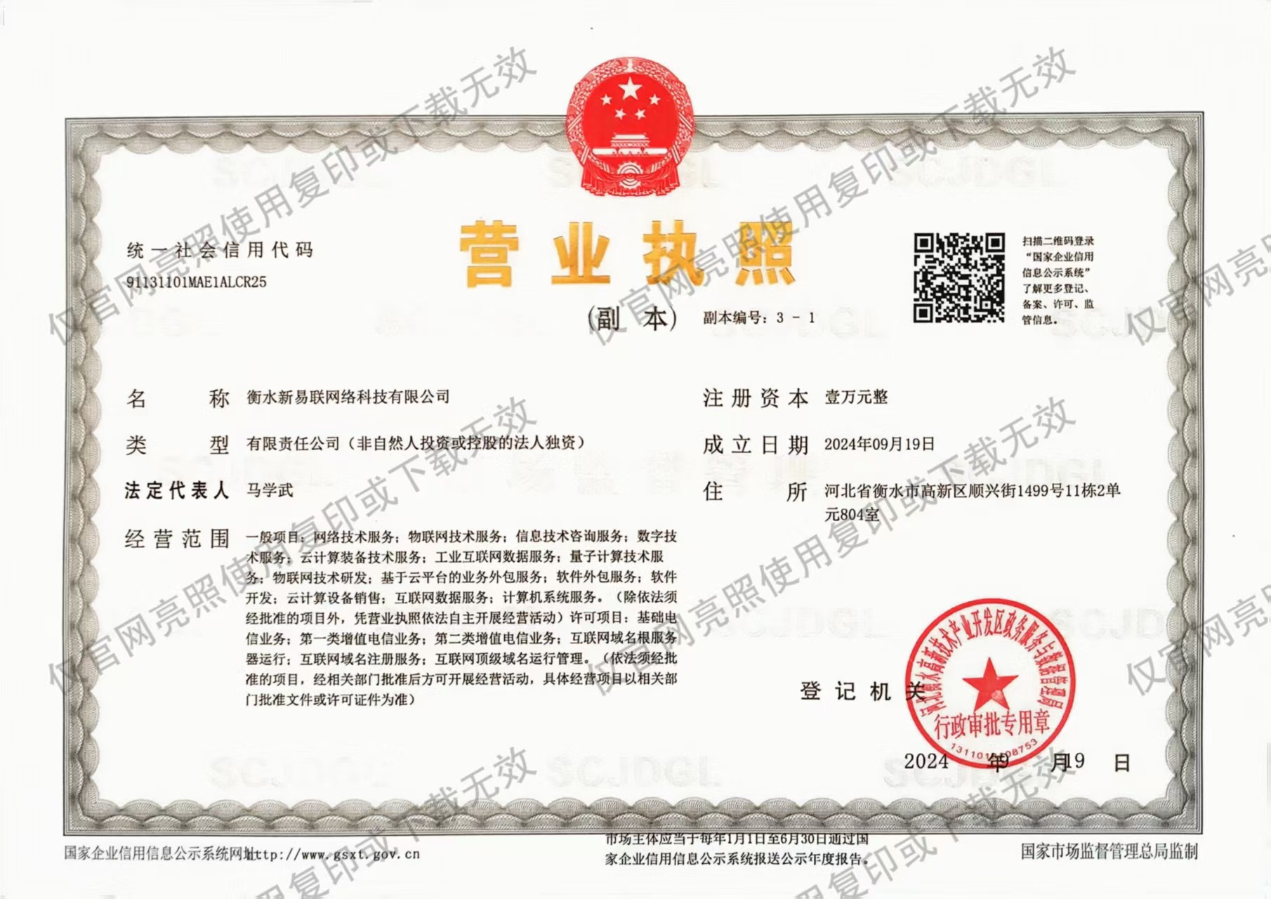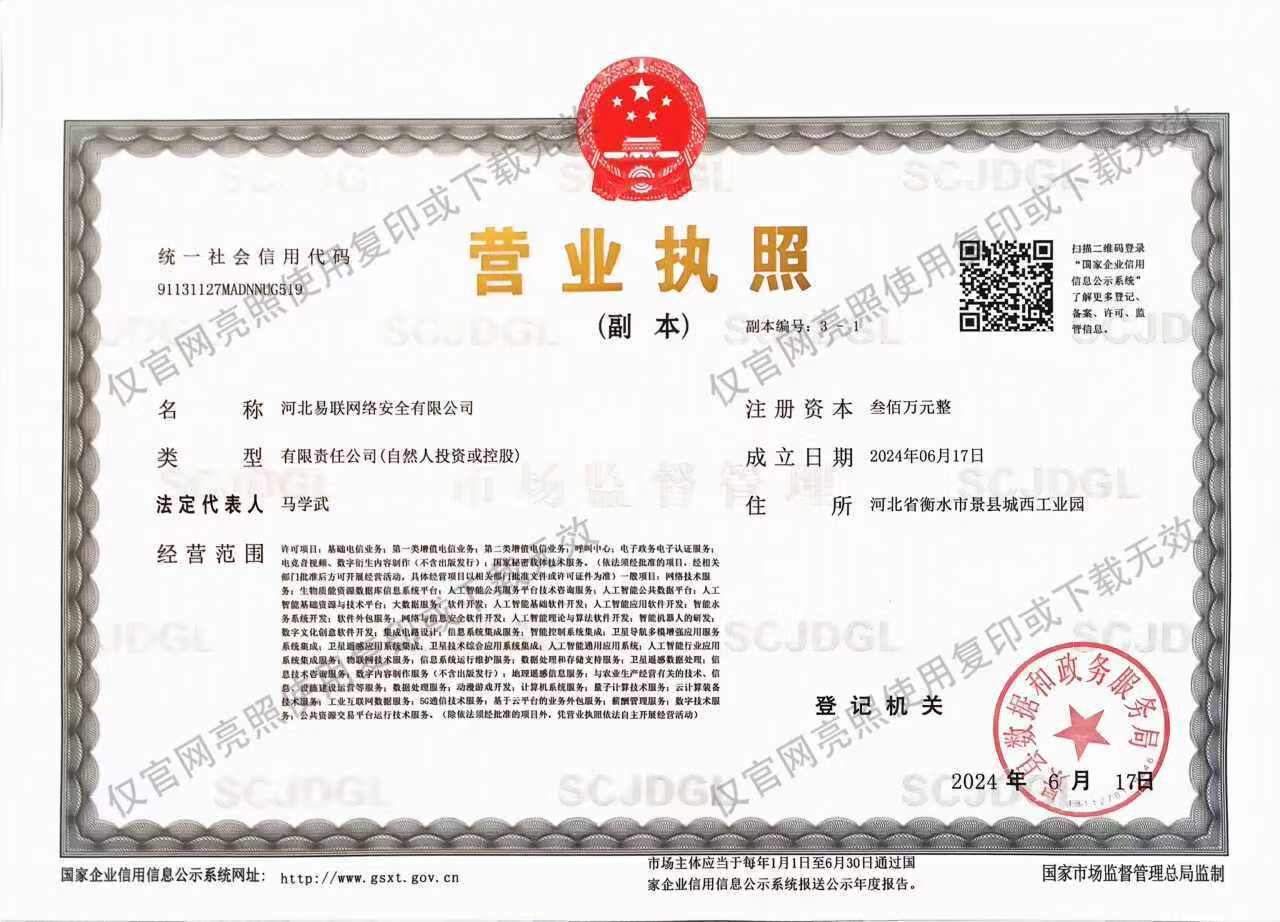 河北新易联网络科技有限公司,成立于2024年,位于河北省衡水市高新技术产业开发区,公司坚持不懈的进行自我挑战,满足客户的需求变化及无法预测的市场变化,继续秉持自给自足独立独步的精神,重视地球环境,尽全力制造出可信赖的产品。现我公司已于新网数码、小枫网络、阿里云等单位建立合作。